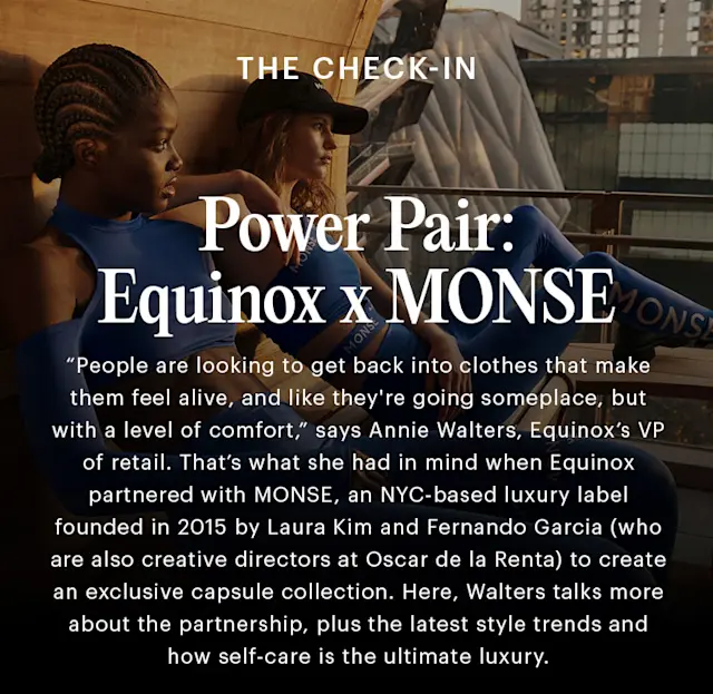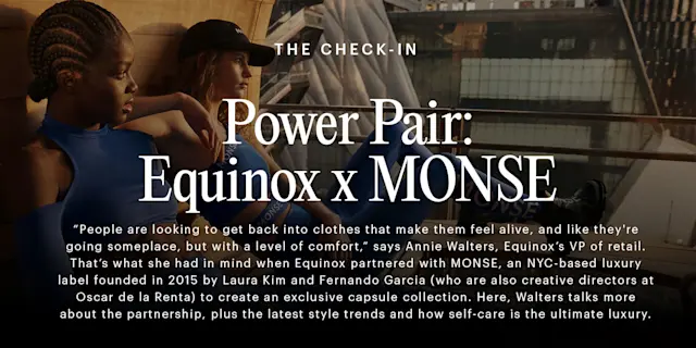 “I saw all the things MONSE was doing in the active space that were really cutting-edge in terms of bridging lifestyle, active apparel, and performance fabric. It turns out that MONSE co-founder Laura Kim is passionate about wellness and loves the Equinox space so it felt like it was the right moment for us to come together.