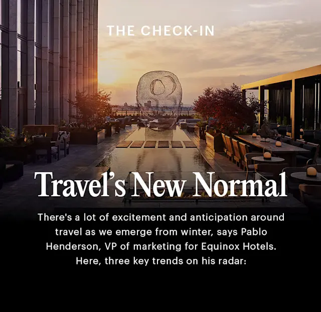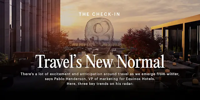 “The National Parks, camping hybrid solutions, and lake destinations are all thriving right now,” Henderson says. But, he adds, the great outdoors is also being embraced in new ways. “If people aren't going to far-flung places to stay at resorts, urban hotels have the opportunity to become more resort-like.” The Equinox Hotel is launching a sailing club in partnership with Hudson Sail this spring, which Henderson cites as an example of how urban environments and the great outdoors can come together. “I’d predict there will be other equivalent activities that cities start to lean into to make it more desirable to vacation.”