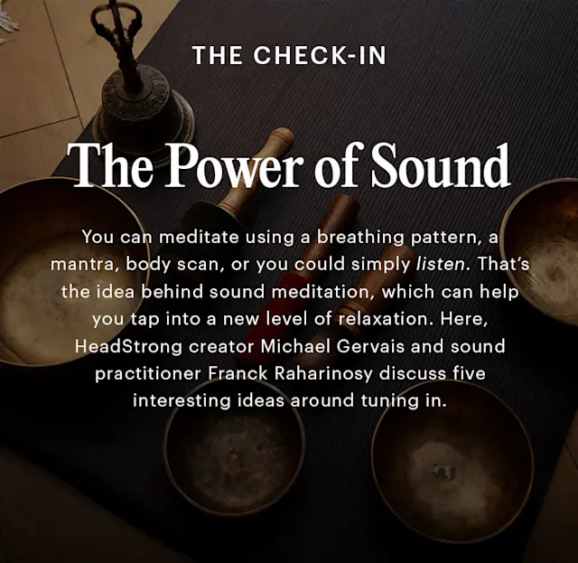 “We’re starting to do sound meditation in more clubs, beginning in New York, London, and LA,” says Gervais, noting that IRL (compared to through a speaker or headphones) is ideal in the way that your ears work with sound and experience the instruments’ vibrations. “We’ve also been doing a series of unique events, like a sound experience at midnight for New Year's Eve where the gong literally rang in the new year, and one in Central Park where the concept was to turn Wollman Rink into a giant healing sound bowl.” Next up: a sound meditation at Equinox Hotel for the Vernal Equinox (you can sign up here). “The sound is going to help to generate that feeling of vastness, of potential,” Gervais says.