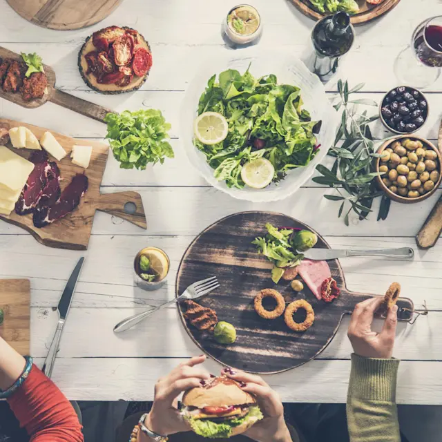 Snodgrass recommends eating in a calm environment with minimal distractions, choosing high-fiber foods that take more time to chew, and setting a minimum number of chews per bite—this will aid in digestion as well. She also suggests using smaller plates and utensils like chopsticks, which increase the amount of time it takes to eat. Lastly, she says, “find a slow eater and pace yourself to them.” Dick advises spending “at least twenty minutes consuming a meal, to give the body and brain time to process.” If you struggle with this, he says, record how long it actually takes you to eat, and increase the time from there.