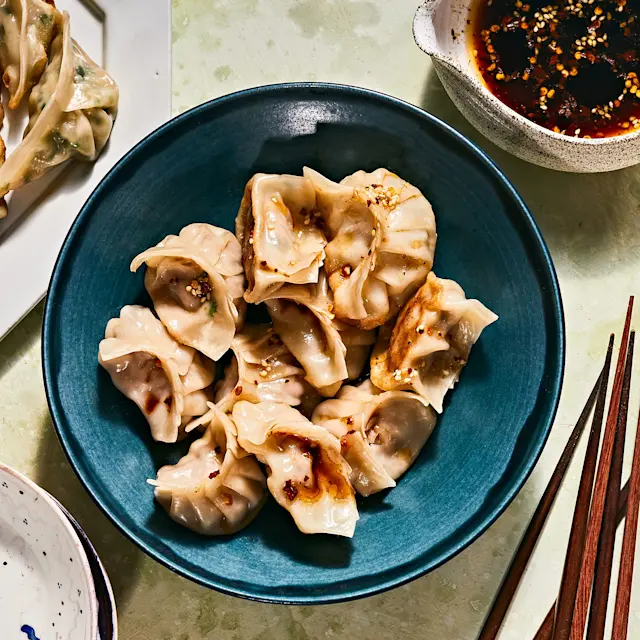 Steam, boil, or pan-fry dumplings; serve with dipping sauce.