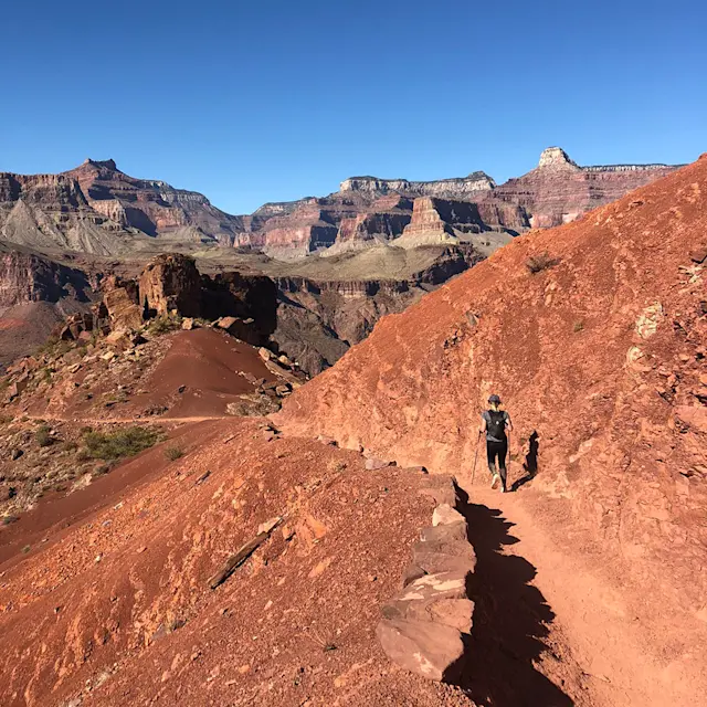 And so they invented the Rim to Rim traverse, a grueling route that runs north to south (or vice versa) across the canyon. The unofficial course covers 20-plus miles and includes more than 6,000 feet of elevation gain and drop each.