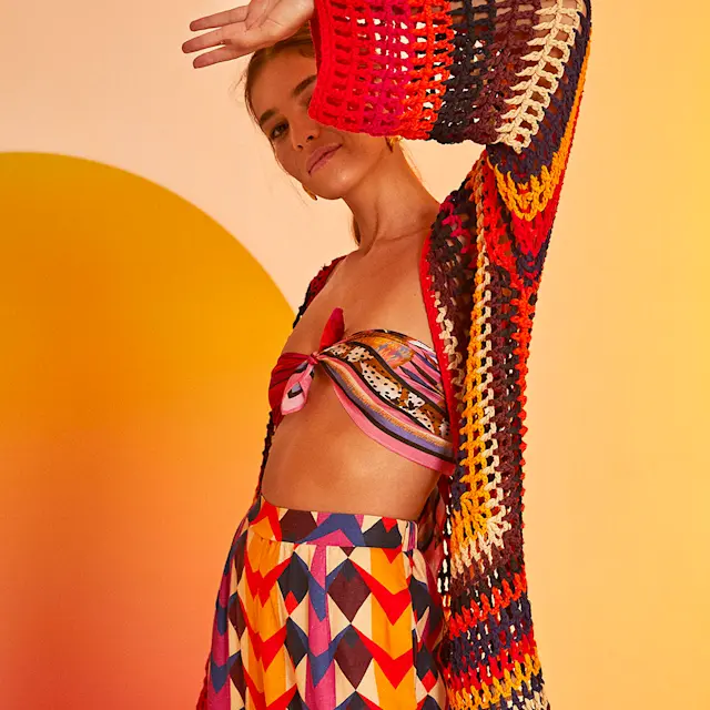 When asked how she would describe her home city of Rio de Janeiro, Katia Barros, co-founder and creative director of women's clothing brand FARM Rio used the words "playful, joyful, and authentic." These adjectives also speak to the ethos of the apparel line she started in 1997 with co-founder Marcello Bastos. The bold, ready-to-wear pieces, which include airy trousers and dresses, patterned puffers, swimsuits, and more, are made from textured and printed fabrics that draw inspiration from the Brazilian seaside metropolis.