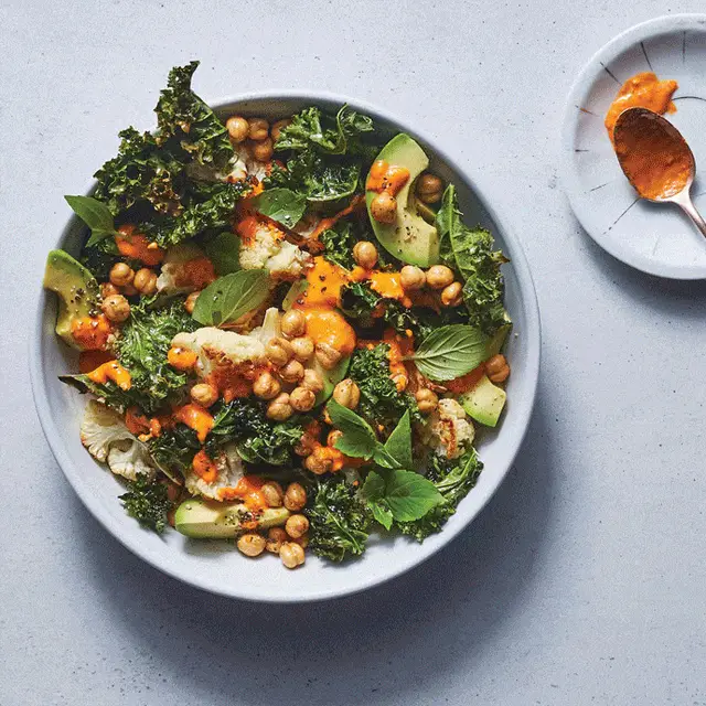 Start your week with a hearty, flavorful salad: Monday's version features kale, chickpeas, and a turmeric dressing. You'll follow that with slow cooker turkey chili on Tuesday which only requires 15 minutes of prep. On Wednesday and Thursday, you'll use lamb. First, the meat is turned into burgers and served with roasted vegetables and a butternut squash compote. The next night, it becomes Middle Eastern meatballs. Friday's dinner is a healthier stuffed cabbage—our interpretation swaps the traditional rice and beef for cauliflower and ground turkey.