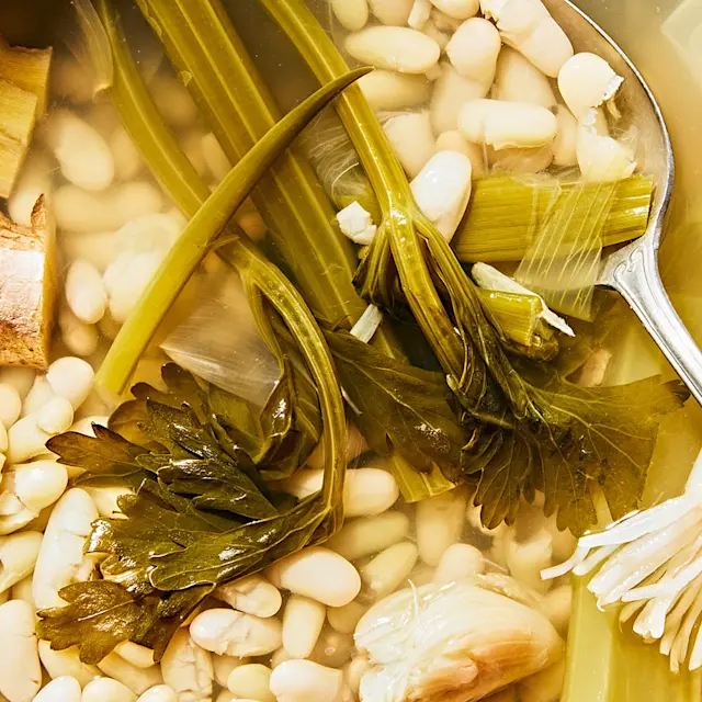 To boost the flavor of dried beans, New York City-based recipe developer Jenny Huang adds a selection of aromatics including ginger, celery, and garlic to the water before boiling. While you can try any dried variety for these recipes, Huang's favorites are flageolet, cannellini, Great Northern, cranberry, and mayocaba. If you prefer, use a pressure cooker and cook the beans according to the manufacturer's instructions. Just be sure to save the cooking broth.